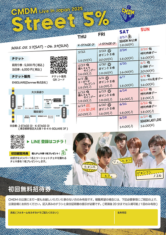 韓国グループCMDM(シーエムディーエム)が来日長期単独公演「CMDM Live In Japan 2025 -street 5%-」を東京・新宿にて2025年5月17日(土)よりスタートした。