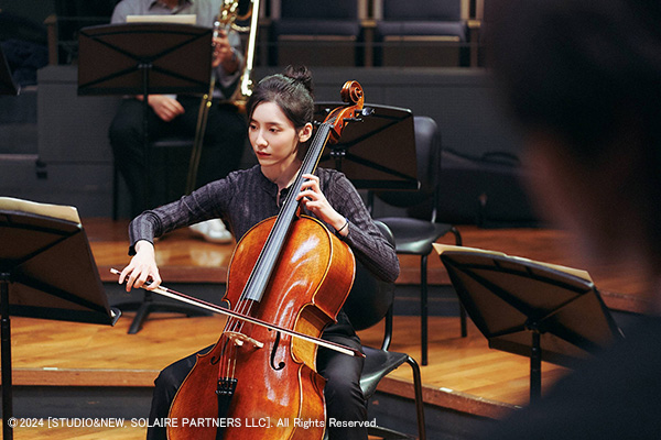 失踪したスヨンの代理チェリストとして現れるミジュ役には、「財閥家の末息子 ~Reborn Rich」や「財閥 x 刑事」、『コンジアム』などで人気女優の仲間入りを果たしたパク・ジヒョン。今年はNetflixにてドラマシリーズ「ウンジュンとサンヨン」にキム・ゴウンとメインキャストとして出演することが決定している。他の二人とは違い、キム・デウ監督作への出演は初めて。インタビューでは「素晴らしい先輩たちの中に入ることはとても緊張しましたが、現場では本当に優しくしていただき、自分はこんなにも愛してもらえる俳優なんだと感じました」と答えた。本作では優雅だが陰のあるチェリスト役に挑戦し、その謎めいた魅力は、ソンジンだけでなく観る者をも誘惑するのだ。