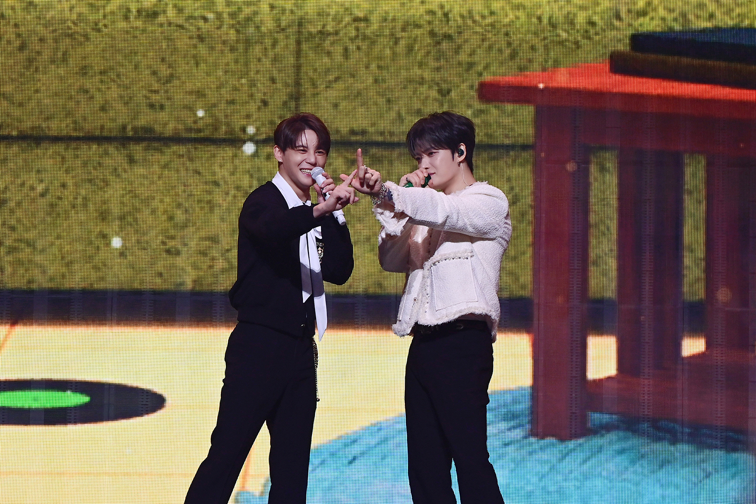 歌い終えると2人で「僕たちはJXです!」と挨拶。続けて新年の挨拶をした後、お互いの近況報告。ジェジュンは日本でのアリーナツアーも無事終えて日本の各地を回ったという話から、さらに磨きがかかった日本語を通常モードで話し、ジュンスは韓国でコメディ系の新たなジャンルのミュージカル『ビートルジュース』がスタートしたと報告。さらに日本には久しぶりに来たのでドキドキしているとのことで、「日本語がめちゃくちゃになっちゃったから、ジェジュンに助けてもらいながらがんばります」と無邪気に話すジュンス。相変わらずの2人のそんな構図にもほっこり。
