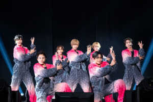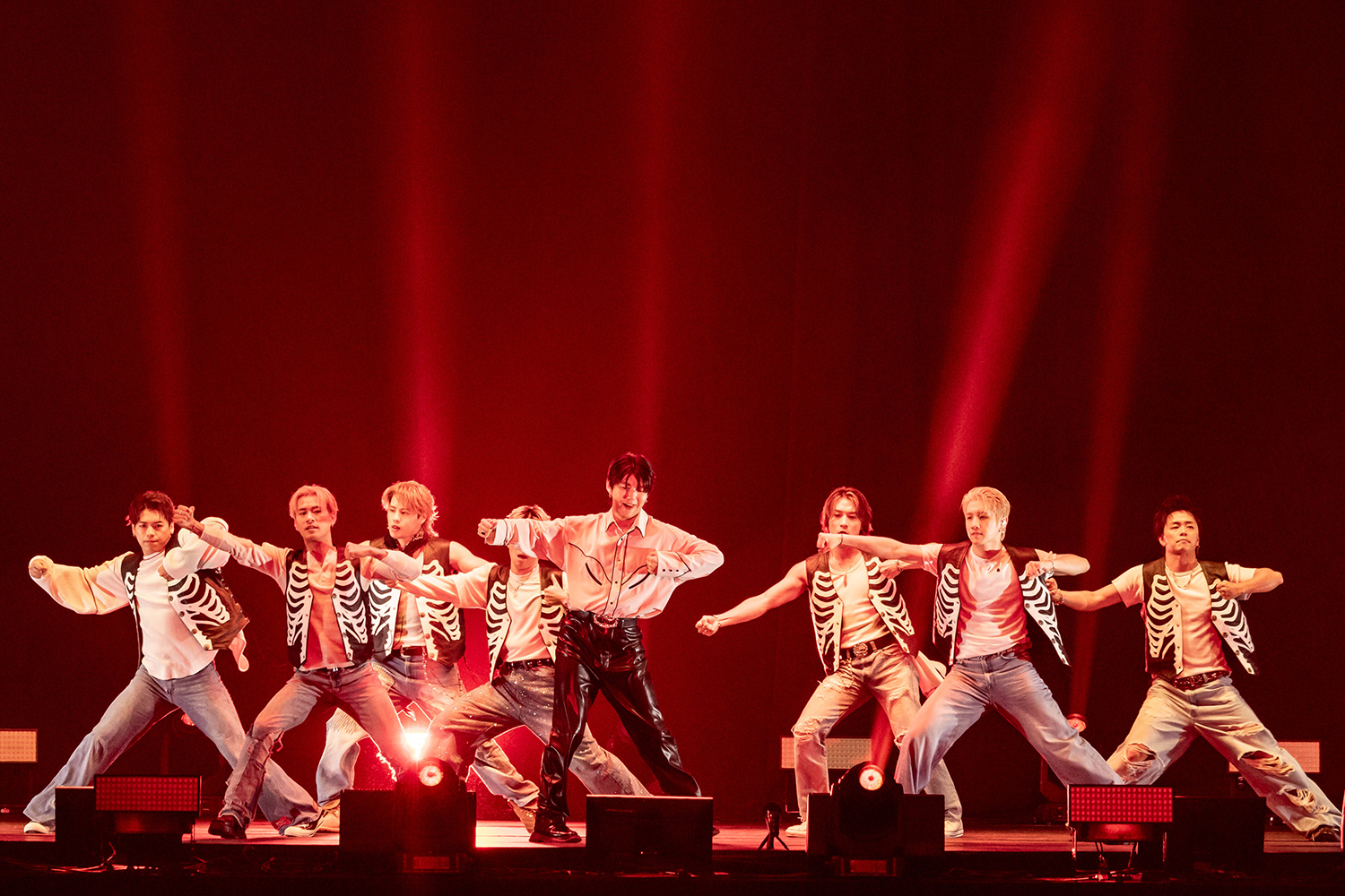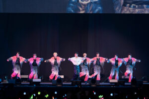 ライブパートのトップバッターはBALLISTIK BOYZ。おそろいのボーン模様のベストで揃えた7人は、「Stardust Forever」でさわやかなエネルギーを放って、ライブの火蓋を切って落とす。前半ではカリスマ性あふれるパワフルなパフォーマンスを見せ、一糸乱れぬクランプでも圧倒。またセクシーな振付が光るレゲトン調の新曲「All of You」をはじめ、「Shave Ice」「SUMMER HYPE」など夏を意識した楽曲を多く披露した。MCでは奥田力也が韓国語で挨拶し、加納嘉将は翌日が誕生日だとアピール。最後にBALLISTIK BOYZは「PASION」で観客と一緒にジャンプし、持ち前のステージ掌握力で会場を一体にして盛り上げた。