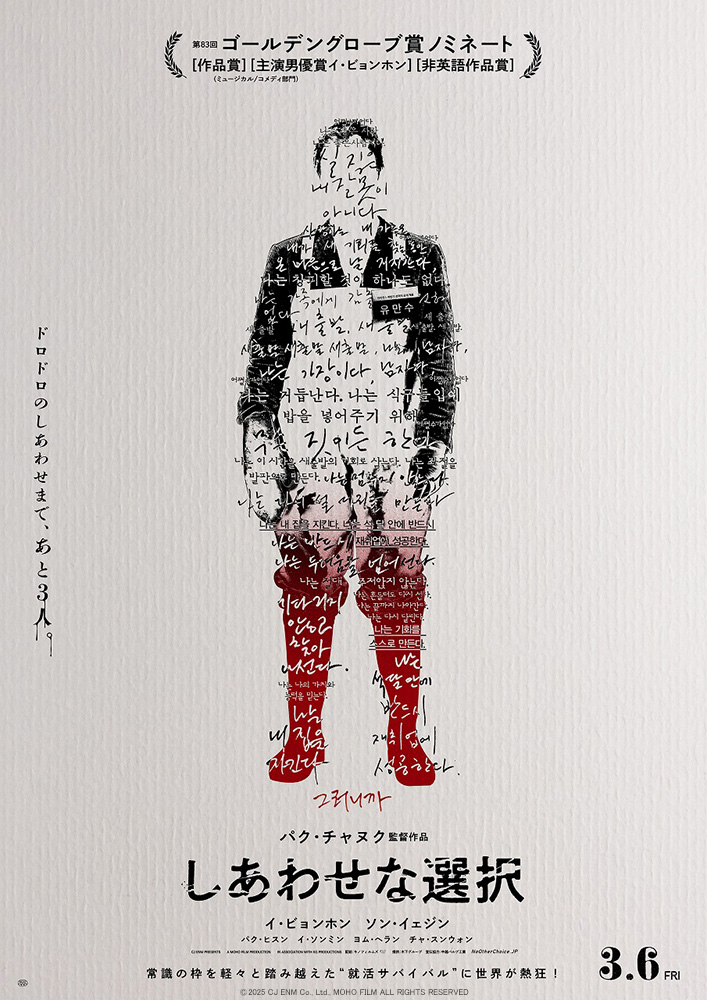 『オールド・ボーイ』(04)でカンヌ国際映画祭グランプリ、『別れる決心』(22)で同映画祭監督賞を受賞、常にタブーを打ち破り、緻密さと完璧な美学で観客を魅了してきた巨匠パク・チャヌク監督。新たな地平を切り拓く衝撃作を発表し続けてきた巨匠が放つ最新作は、現代社会に生きる誰もが直面し得る“突然の解雇”という現実を独自の視点で描き出し、人間ドラマ、スリラー、そしてパク・チャヌク作品としては異例の弾けるユーモアが交錯し、映画のあらゆるジャンルが鮮やかに響き合う最高傑作。全世界を席巻した『パラサイト 半地下の家族』と同じ気鋭の配給会社NEONが北米配給権を勝ち取っている。ヴェネチア国際映画祭コンペティション出品をはじめ、トロント国際映画祭で国際観客賞を受賞するなど国内外の映画賞で数々の栄誉を受け、ゴールデングローブ賞ではミュージカル/コメディ部門の作品賞、主演男優賞、非英語作品賞の3部門でノミネートを果たした。主人公・マンス役に据えられたのは、ハリウッド作品でもキャリアを積んだ「イカゲーム」のイ・ビョンホン。『JSA』以来25年ぶりの長編映画タッグとなったパク・チャヌク監督作品で新たな境地を開拓し、見事ゴールデングローブ賞で映画部門では韓国人初となる主演男優賞にノミネートを果たした。