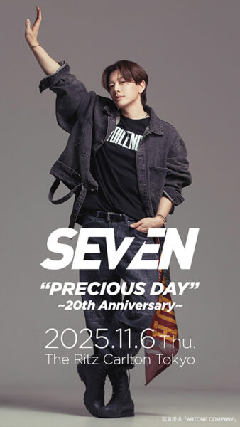 SE7ENはこれまでに日本で、デビュー曲で本人も大切な曲だと公言している「光」を含むシングル曲を8曲、デジタルシングル2曲、フルアルバム、ミニアルバム、ベストアルバムを1枚ずつ発表。優れた歌唱力・ステージパフォーマンス力・通訳不要の日本語力で多くの日本のファンを魅了してきました。最近では韓国・日本で上演されたミュージカル「ドリーム・ハイ」で主演を務めるなど精力的に活動を続けるSE7ENの、日本デビュー20周年記念のSPECIAL PARTY「SE7EN “PRECIOUS DAY” ~ 20th Anniversary ~」は11月6日にザ・リッツ・カールトン東京にて開催決定。