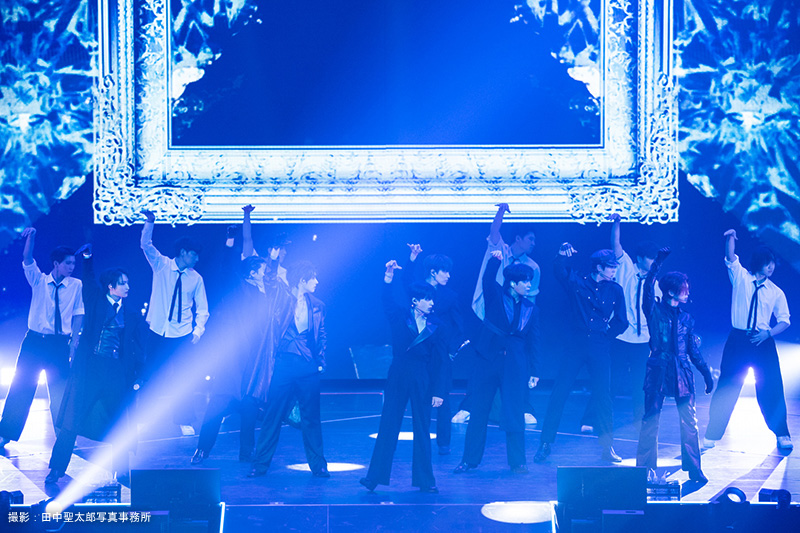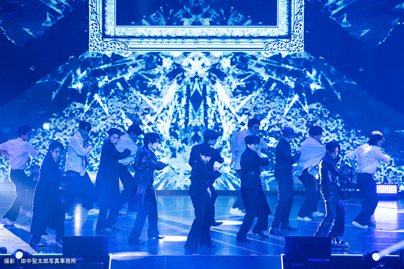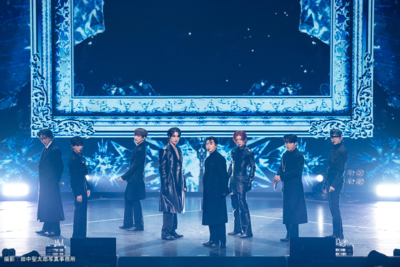 「ここで何曲かお聞かせしたいと思います」というジョンホの曲フリで日本オリジナル曲『Days』がスタートすると、センターステージをゆっくりと歩き回りながら、心を込めて歌うメンバーたち。最後は8人で寄り添って、ハートポーズを贈って、ATINYへの愛を示した。そしてホンジュンの「次の曲はATINYのために準備しました」という言葉で始まったのは日本最新カムバックアルバムから『Forevermore』。センターステージに、少し間隔を開けて一列に並び、ひと言ひと言丁寧に、言葉を紡ぐように歌いながら、ATINYに優しい眼差しを贈っていた。
