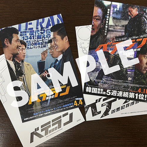 1週間の限定公開に合わせて入場者特典として配布されるのは、今回カムバックした『ベテラン』のカムバックポスターと、4月11日(金)に全国公開する第2作目『ベテラン 凶悪犯罪捜査班』の日本版メインビジュアルをあしらった、特製ポストカード2枚組のセット。裏面は、『ベテラン』にはピストルのデザインが、『ベテラン 凶悪犯罪捜査班』には手錠のデザインが、各作品のロゴとともにあしらわれており、スタイリッシュなデザインとなっている。ここでしか手に入れられない非売品アイテム!さらに数量限定、なくなり次第配布終了のため、ぜひ劇場に足を運んで手に入れてほしい。